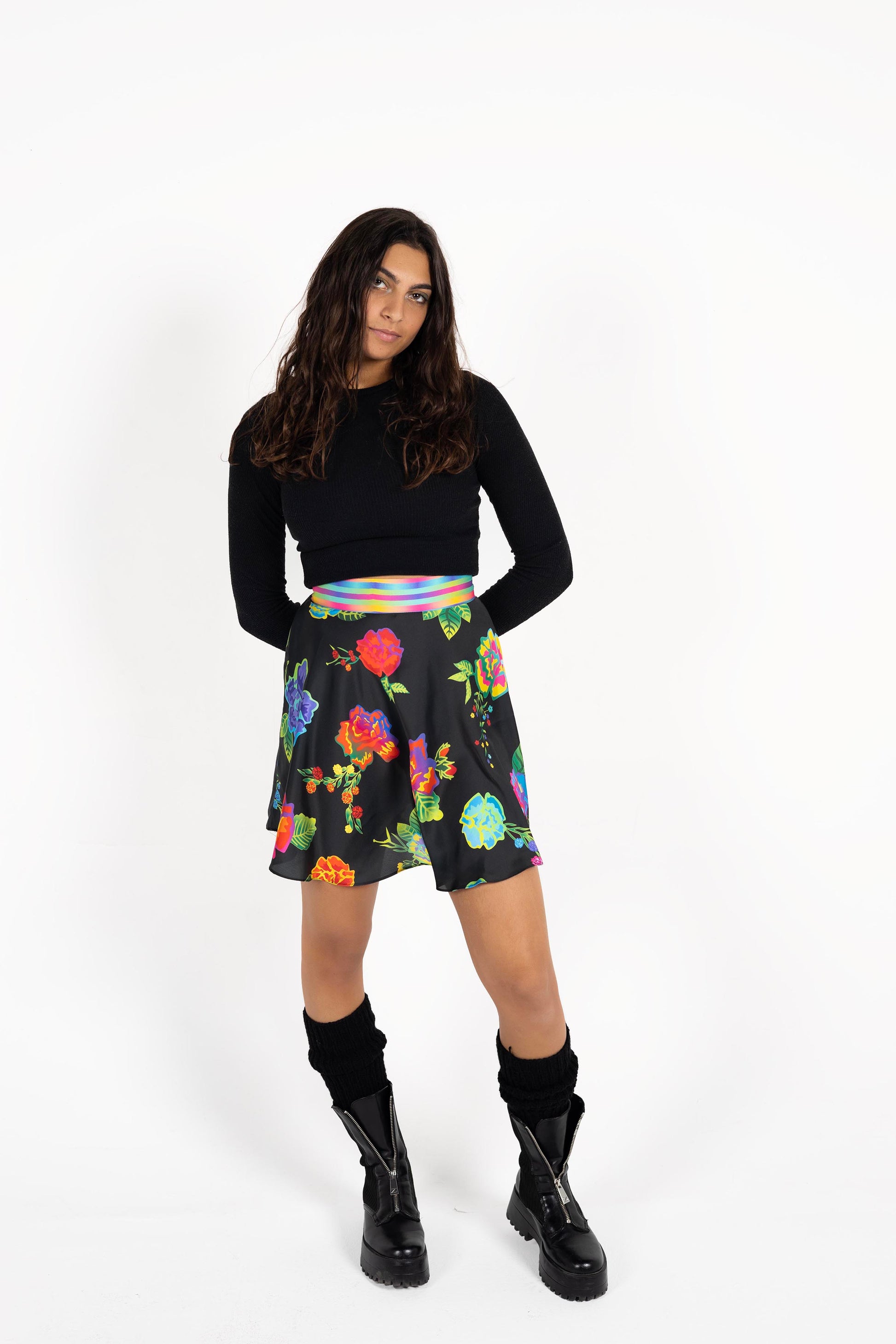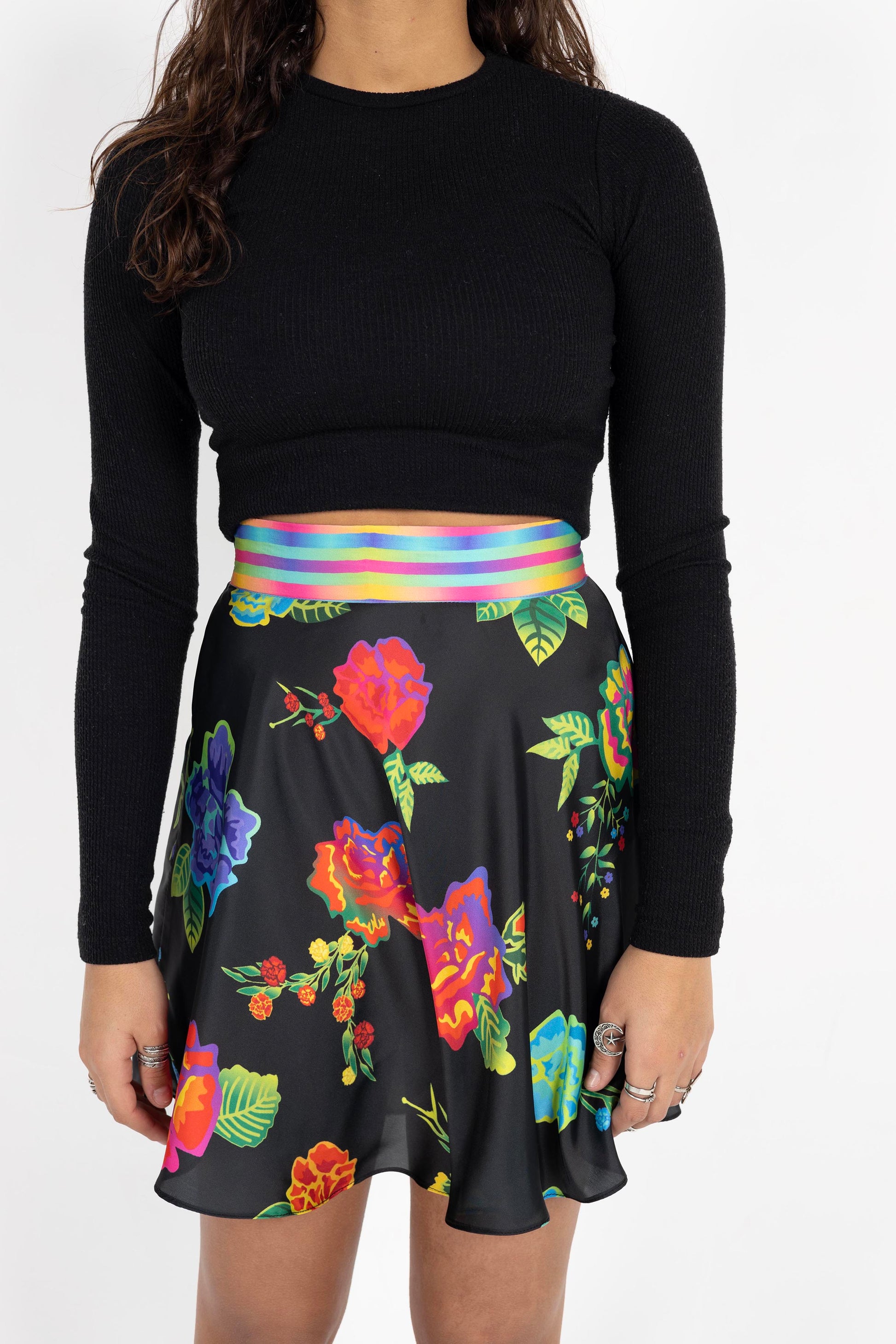 Black floral mini skirt