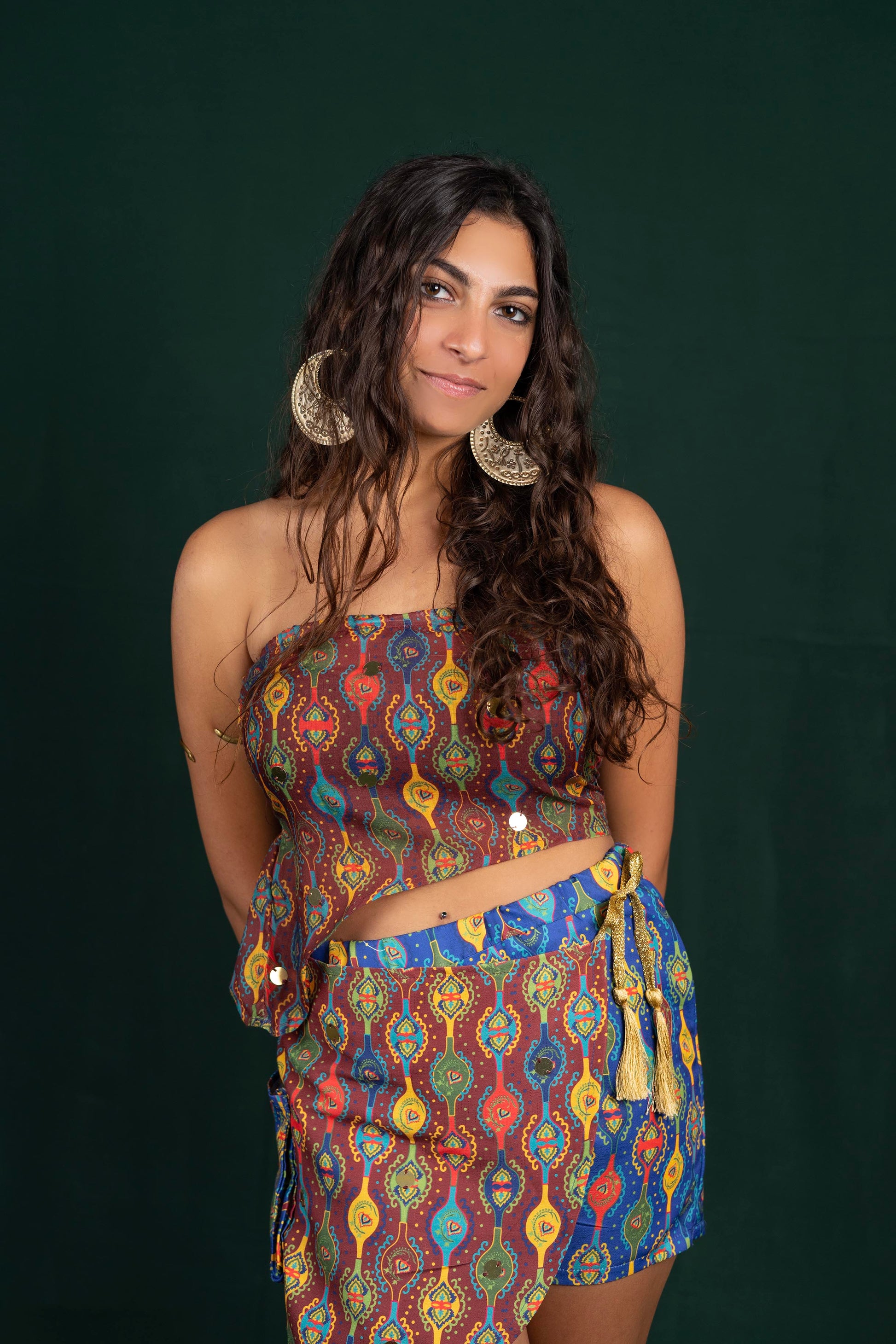 The top also has elastic at the back, for the most comfortable fit, with dangly small copper discs for a shiniest look.