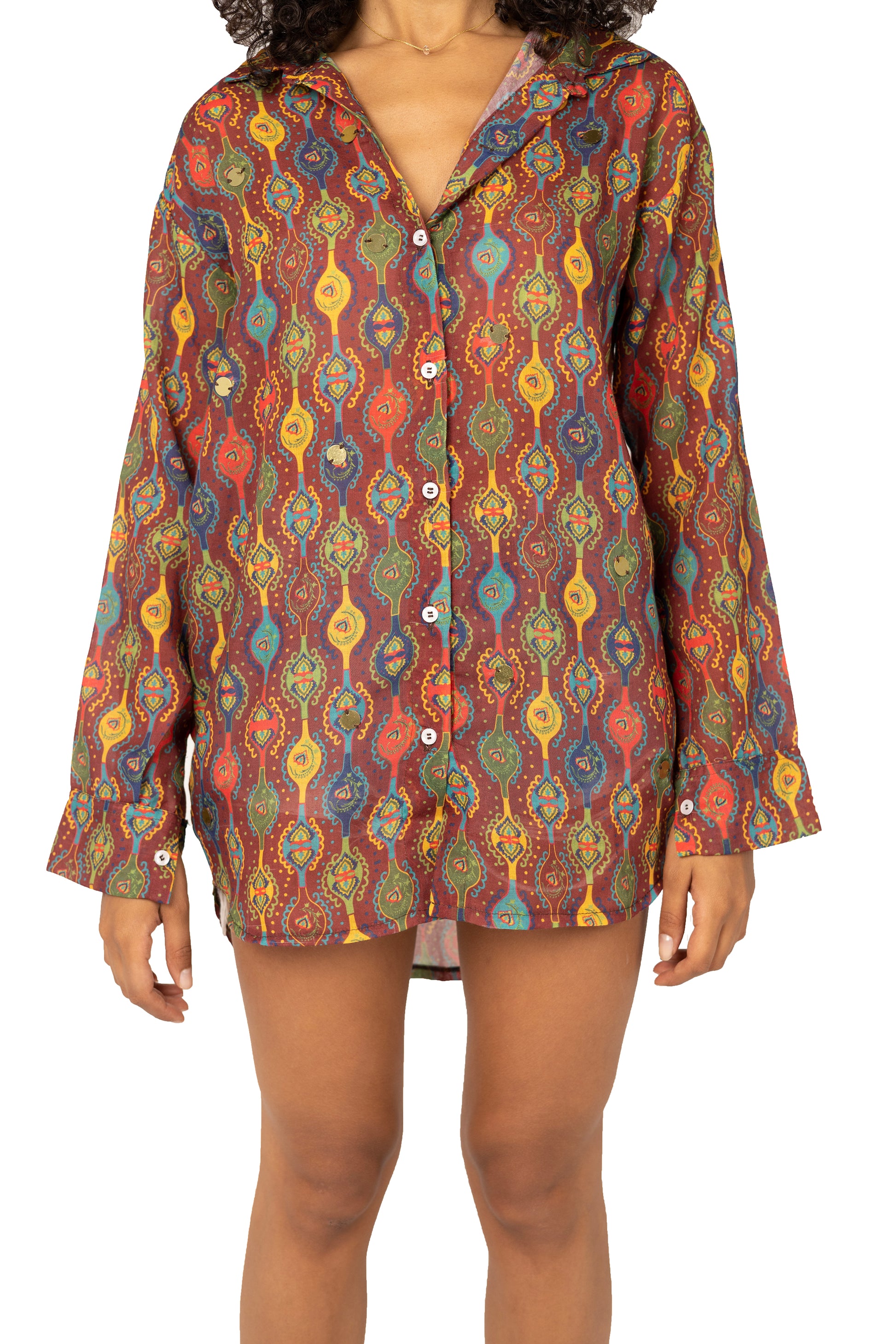 We got you covered for any am-pm situation, whatever the weather! Our Este Sangria Shirt has a cozy silhouette.It has small dangling copper discs for an extra shiny look.