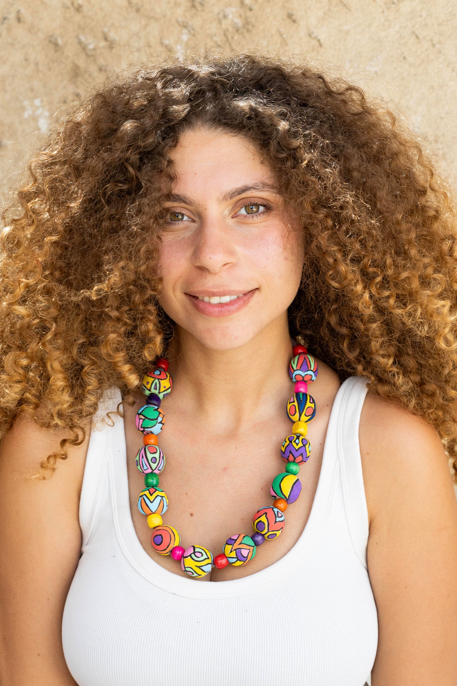 Hand-painted large beads leather necklace
