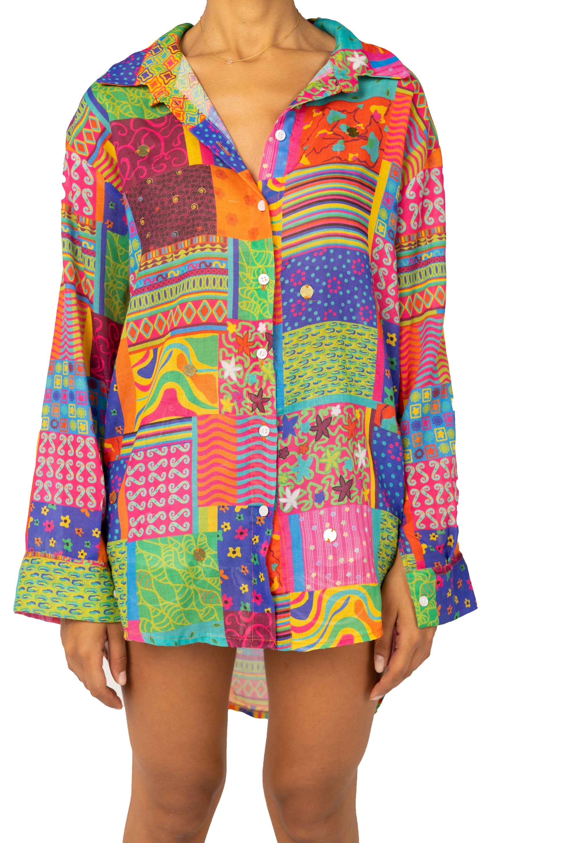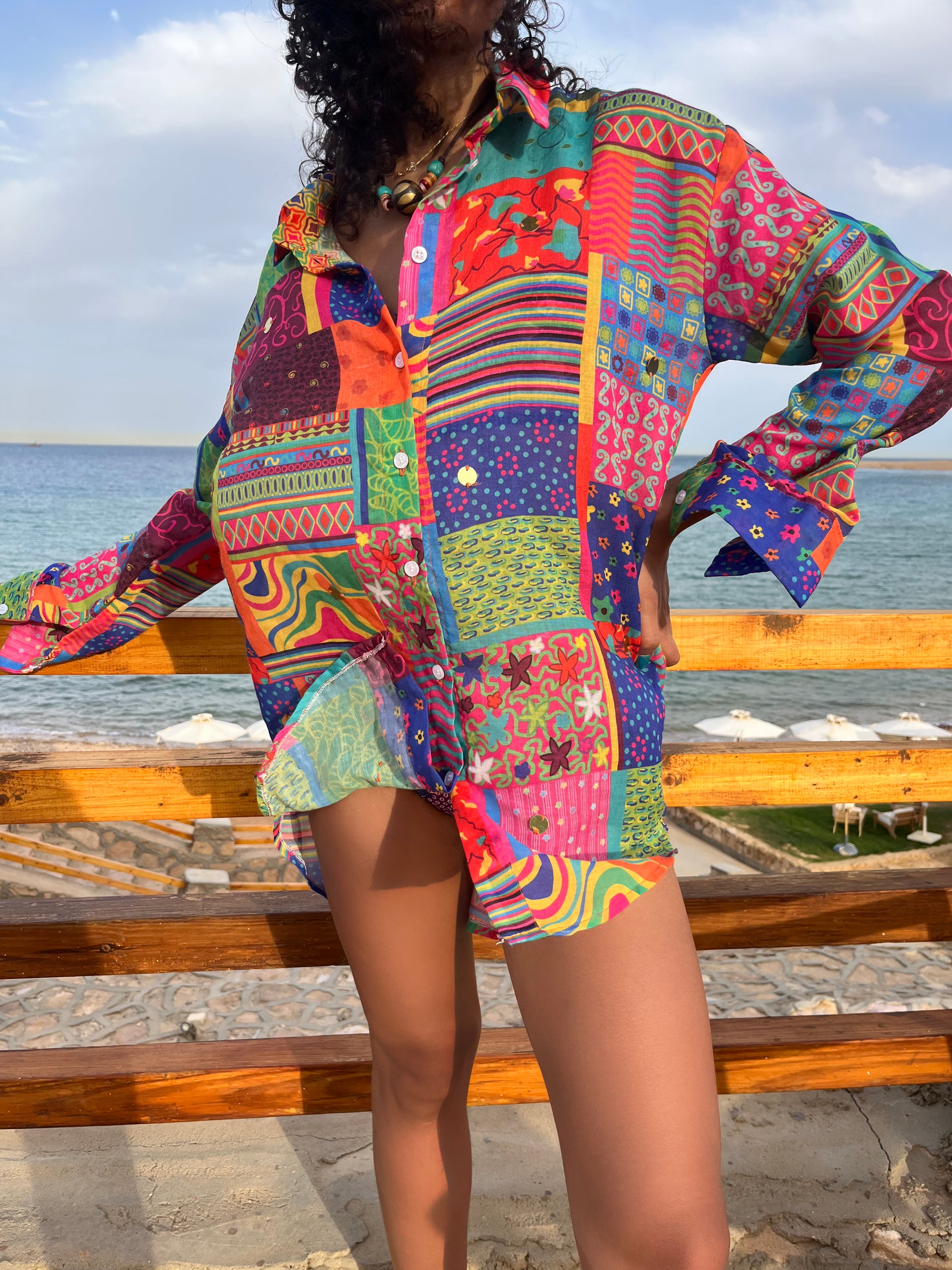 You can style it differently, either with classic pants for a meeting, with a basic top and plain pants for a morning outing, or even on your way to the beach over your swimsuit. But our pants are the boldest option <3