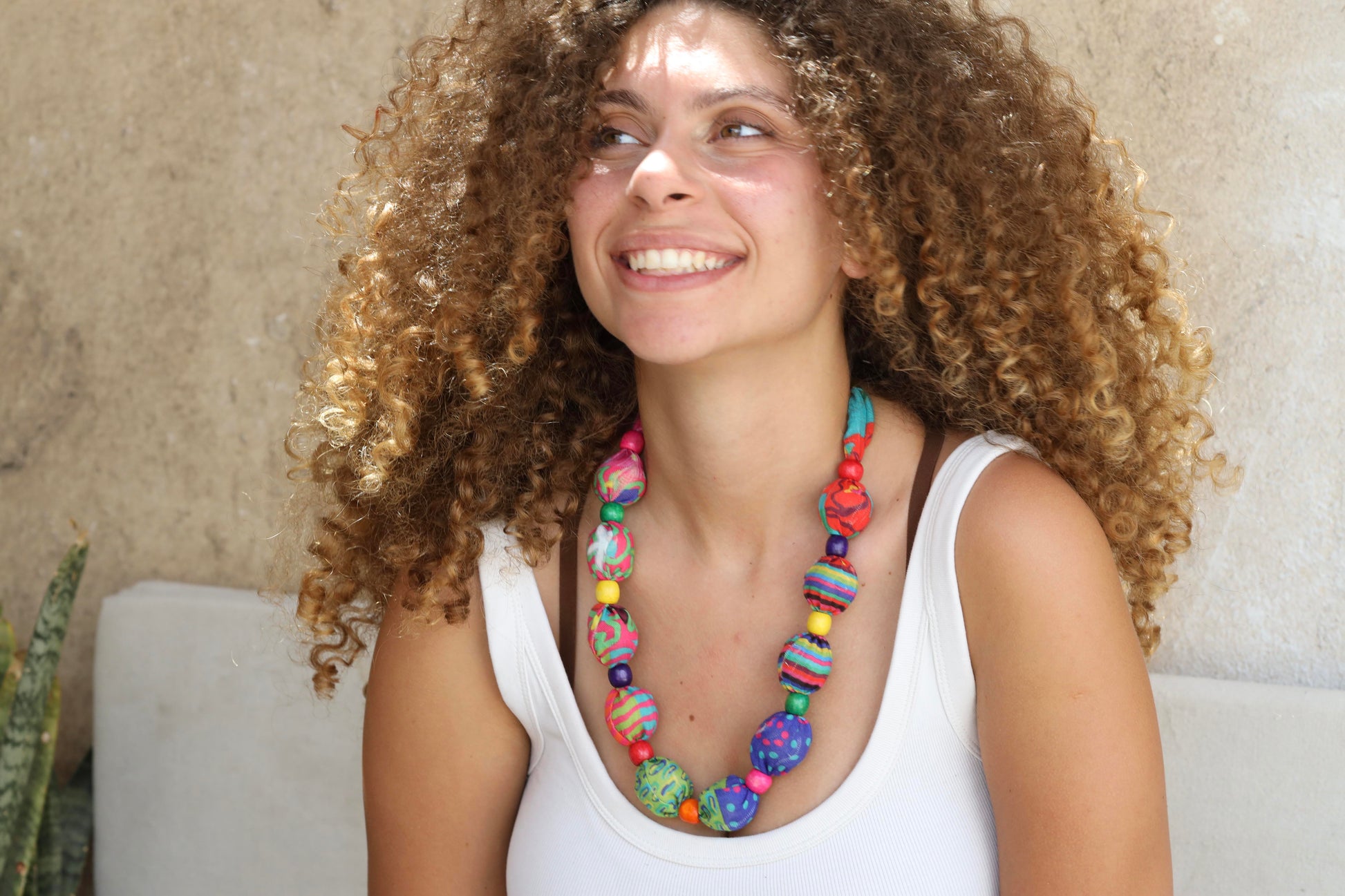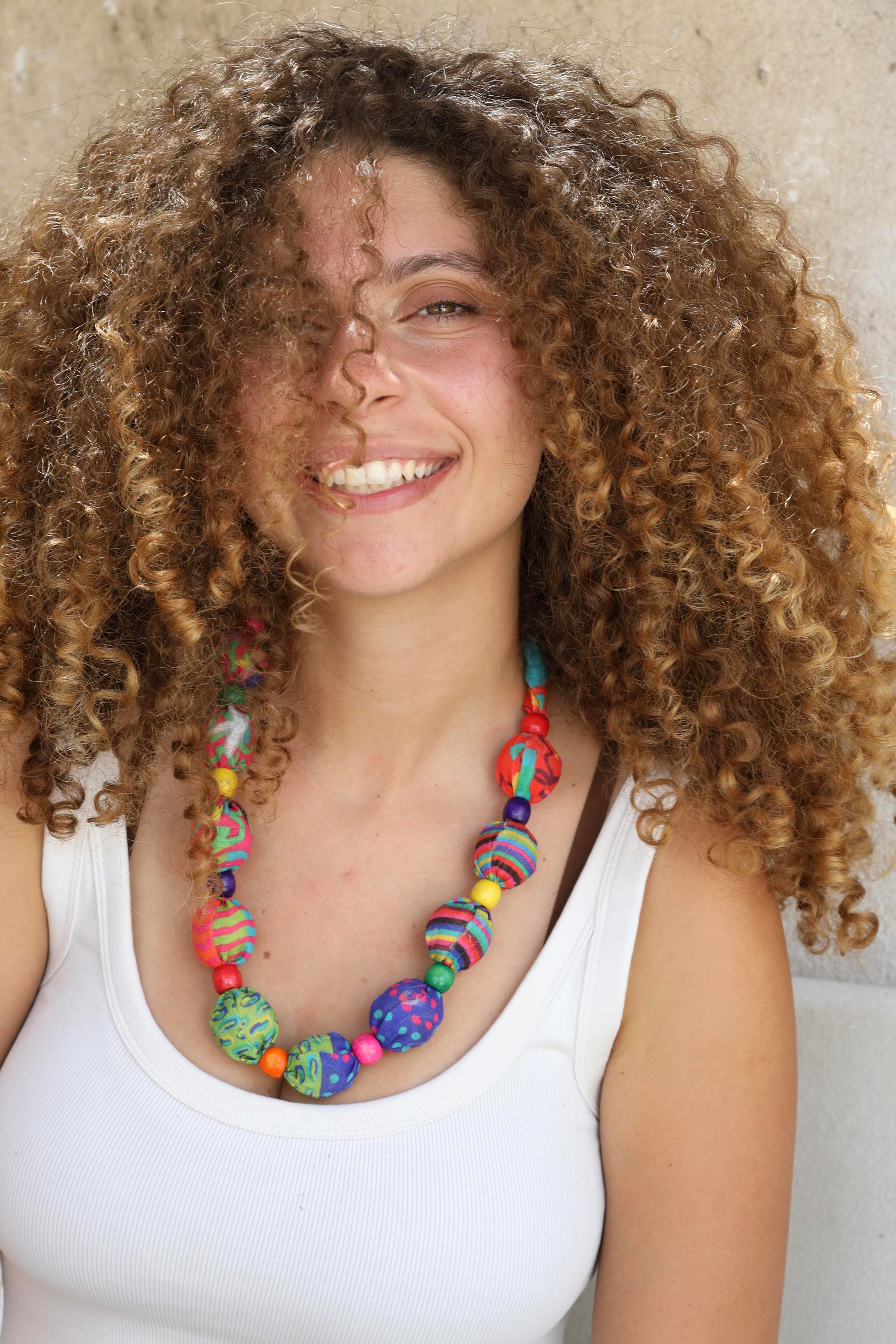 Patchy Fabric Beads Necklace