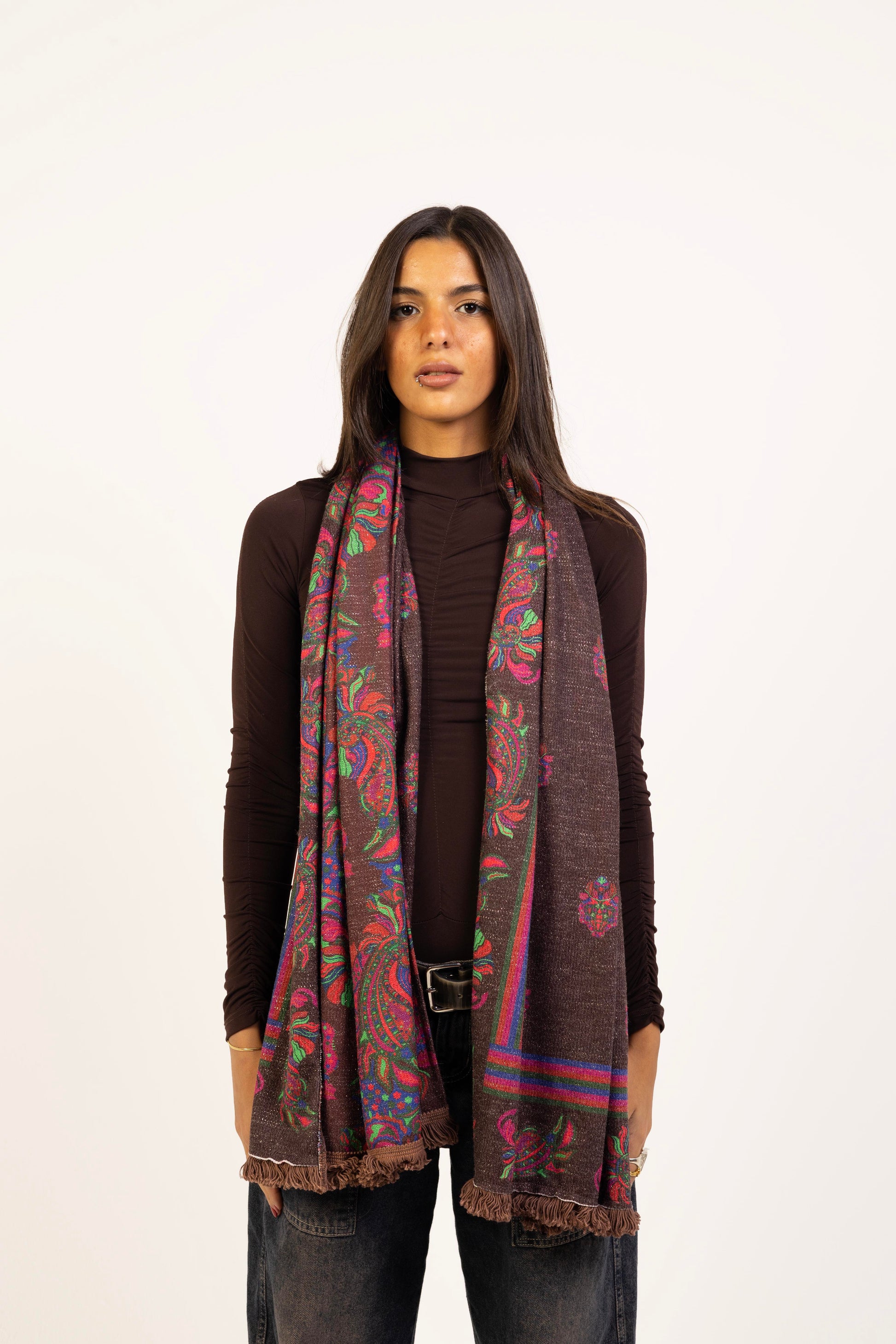 When it comes to scarves, you MUST trust us. The “Wine and ginger double faced scarf" is here to make ANY outfit effortlessly cool and bold. It has tassels from both sides for a more bohemian look. You can wear it on jeans and a plain pullover, or a monochrome outfit that will definitely get popped with our scarf. But the boldest option is our “Wine and ginger skirt”